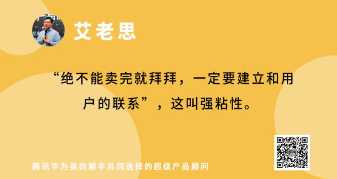 更要记住“绝不能卖完就拜拜,一定要建立和用户的联系”,这叫强粘性。