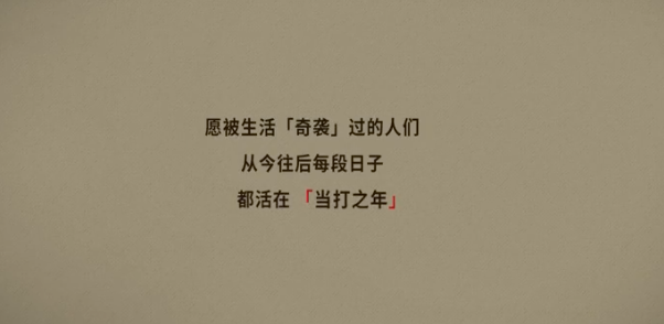 文案将比赛当中新增的“奇袭”赛制与今年人们受到疫情的冲击相互联系起来,奇袭造就奇迹,不见往季总决赛的告别时的煽情与不舍,今年的词,“从今往后每段日子,都活在当打之年”,充满了对未来的憧憬与希冀,也透露出歌手作为一个面对大众的节目,始终与时代命运捆绑在一起,通过音乐传递人文关怀。