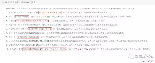 从随机选取的 7 月份海底捞的食品安全检查处理公告中我们可以看出,海底捞自家检查的细致程度其实并不亚于《法制日报》的记者,不同的是记者是潜伏了 4 个月,而常规检查是不可能做到如此的。
