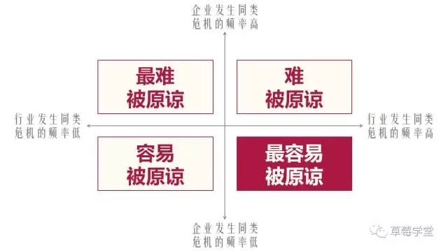 危机发生的频率是影响公众态度的重要因素,包括企业发生同类危机的频率和行业发生同类危机的频率。因为,公众对品牌某次危机事件的态度,在很大程度上会受到行业环境和企业过往形象影响。