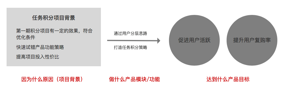 明确产品业务目标可以通过一句话说明:因为什么原因,可以做(优化)什么产品模块(功能)达到什么产品目标。