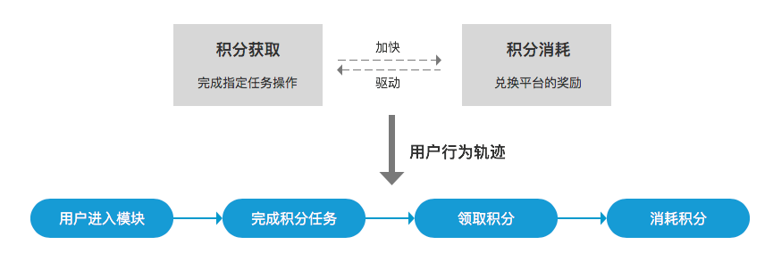 再来分析下任务积分模块,用户进入这个模块,用户行为只有两种:积分获取和积分消耗。