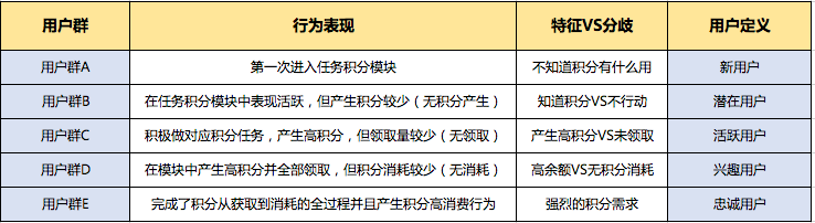 接下来结合任务积分模块的案例,来整理下如何通过这六步做用户分层。