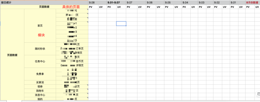 - 产品模块需要在一定周期内收集用户行为习惯。看看用户在这个产品模块操作了什么;