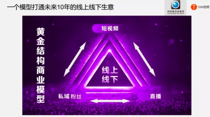 直播+短视频+私域粉丝我们发现当下整个生态流量中,线下的流量去了线上,线上的流量去了短视频和直播这个场景,那么谁能够玩转短视频和直播,谁就会拥有机会。2018年可能你错过了成为一个短视频IP和网红的机会,那么2020年千万不要错过成为一个直播网红和直播IP的机会。 短视频做流量,直播建立信任,私域圈粉,这是一个黄金三角。从流量到订单和信任,再到收人收心,这就无敌了。我觉得任何人只要掌握黄金三角,随后的疫情周期无论怎么调整,你都可以是快速浮出水面的那批赢家。