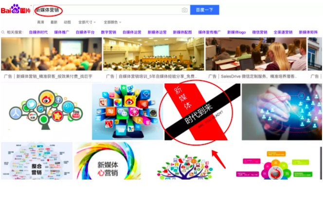 百度图片其实是一个很容易被忽略的引流渠道,上面讲百度图片意义有提到过。很多人上百度图片搜索一些配图,你可以利用百度图片搜索规则,上传自己的产品图片放上联系方式进行引流。