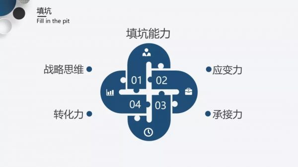 从我的角度来看,这种填坑能力体现在战略思维、应变力、转化力、承接力四个维度。战略思维要求你站在老板的角度去俯视整体的公关策略;转化力要求你能把行业专业的语言转化成媒体能够理解、投资人清晰的语言;应变力要求你能应对一切不可预知的突发情况;承接力则是你对一些事情的承担能力。