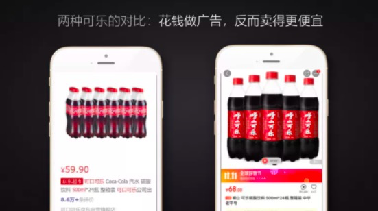 第一个例子,在京东上每年花50亿美元打广告的可口可乐的价格是一箱59.9。