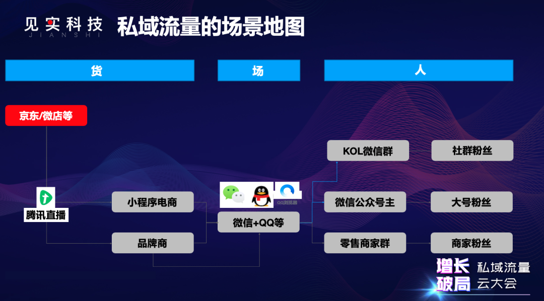 搭建腾讯私域中的场景地图,主要分“人货场”是三方面路径: