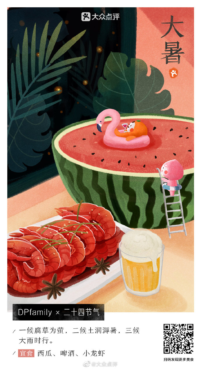 大暑是二十四节气中的第12个节气,也是夏天的最后一个节气。此时正值三伏天的中伏前后,是喜热作物生长速度最快的时期。此时的你不仅身体正遭受热浪的裹挟,内心可能还要承受工作的煎熬。除了空调、西瓜和冷饮可以清凉一夏,这套大暑借势海报也可以让你清凉一下。