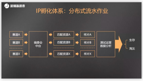 整个IP的孵化,我们现在是分布式的流水作业。什么意思呢?其实你孵化出一个IP是很正常的,但只有你能批量地孵化出更多的IP,你的整个规模、体量、价值才会更大。