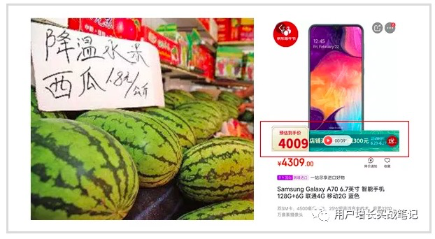 商品促销给出了一个“到手价”或者“减多少”的优惠,但是对于并不知道这个商品日常价格的用户而言,这个价格是否足够优惠不得而知。因此,还存在一类促销是基于价格锚定理论来实现,即在一个公允的常规价格旁,给出一些加了条件限制的优惠价格,消费者往往会用这个优惠价格对比普通价,直观的感知到“特别划算”,而忽略了一些限制条件。