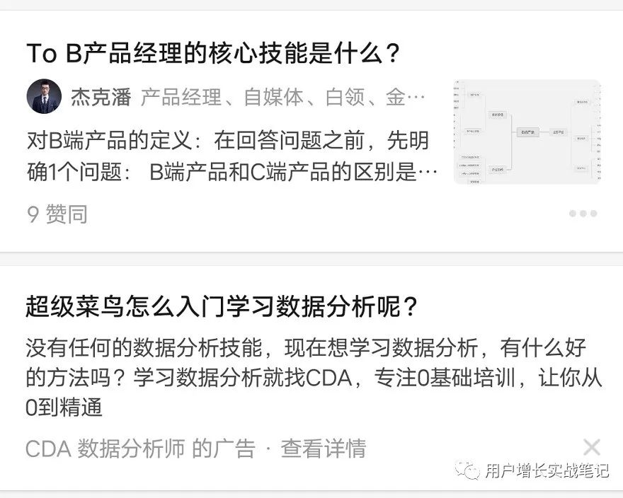 在娱乐为主的信息流中穿插了原生广告,最大负向影响就是降低了用户消费的流畅性,打扰并不是太多。而在一些相对严肃的知识社区或者论坛中也效仿此类原生广告,则稍显不妥。比如知乎,信息流中的广告往往与主题贴合,伪装的很像是一个问答。用户点进去之后是一种明显被欺骗的感觉,并且直接跳出了原有的消费路径(如图7)。类似的情况还有百度贴吧。本来就显得混乱的排版中,很难分清哪一层楼是真正的内容。广告阻断了信息获取实际上得不偿失,原生广告依然需要考虑如何不打扰用户正常的信息获取、不阻断用户的核心使用路径。