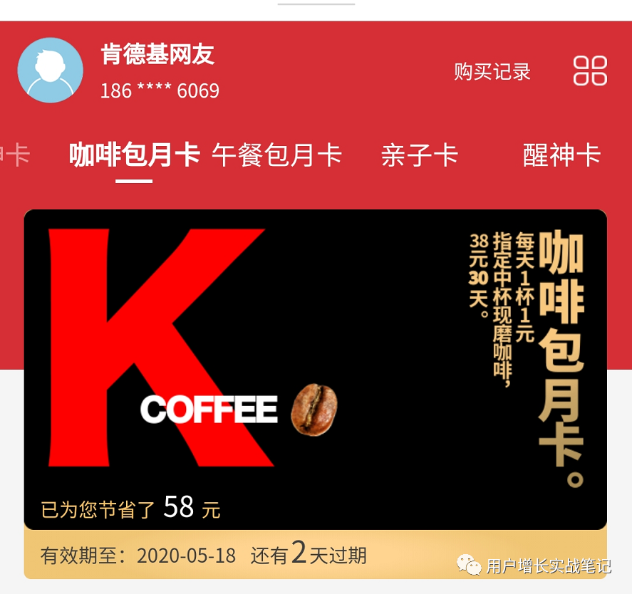 图 10 肯德基的咖啡月卡