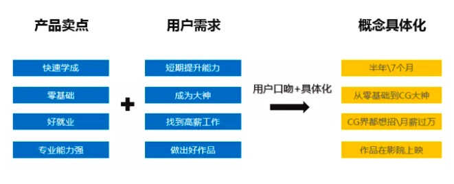 首先,将零散的抽象的概念具体化,以CG原画培训的文案撰写为例: