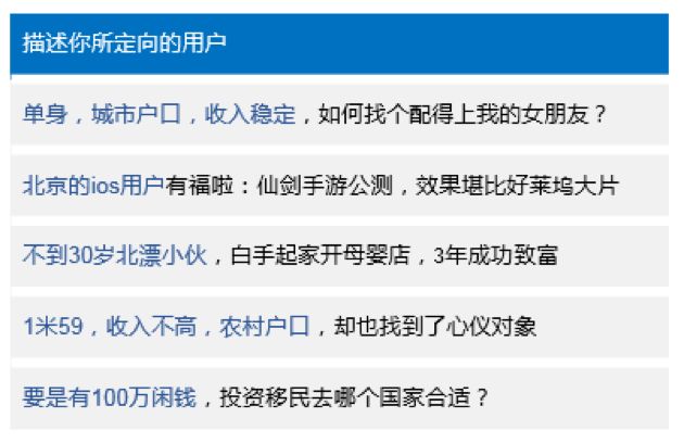 所以,文案也要这样修改,描述 你定向的用户或者讲一个跟目标用户类似的故事,让他们觉得“这说的不就是我嘛!”