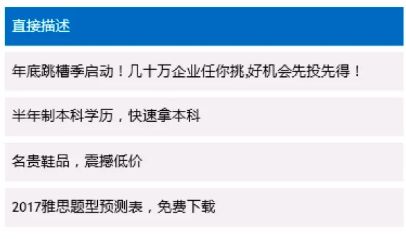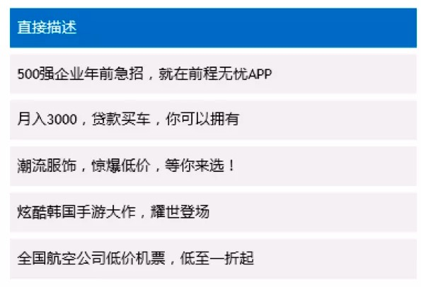 Tips:标题党误导用户产生错误的心理期待,并非真实需求,只会导致广告厌恶,转化率低。