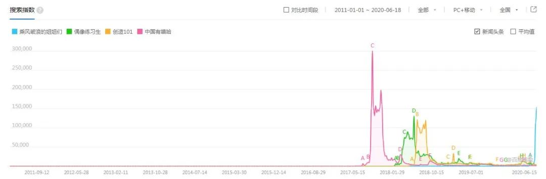 不同以往成团栏目各自对标的人群,比如女生群(偶练)、偏男生群(101),姐姐们覆盖的维度会更广。身边不同年龄段、不同职业人群的热衷,不同属性媒体的连报道,已经证明了这个趋势。