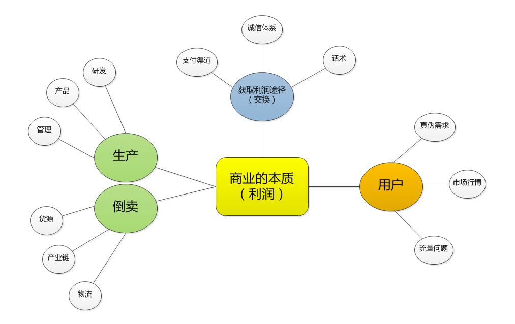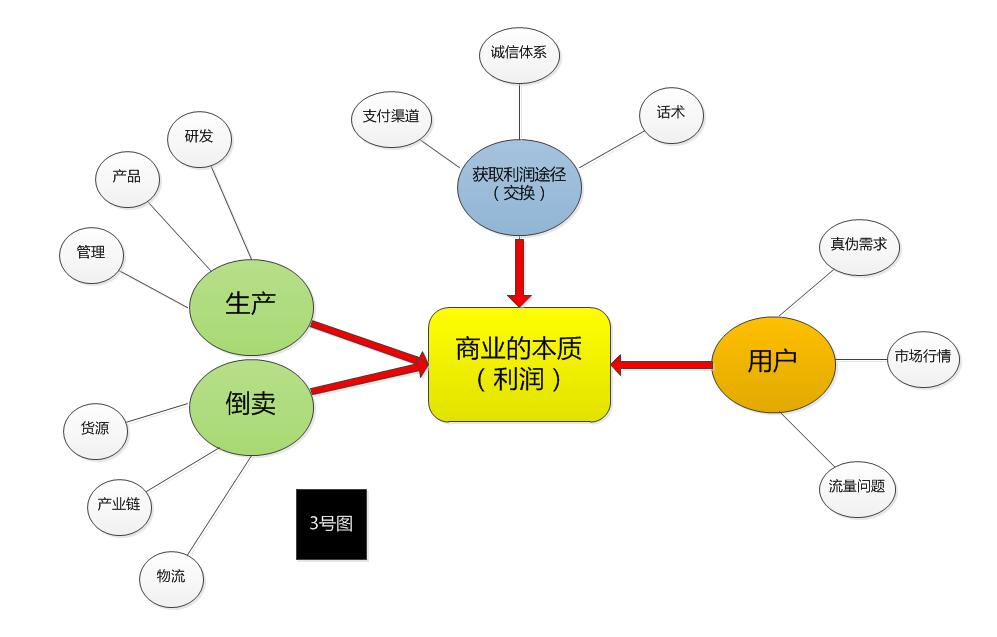 对上图稍作说明,商业的本质是利润,但是利润怎么产生呢?必须通过“交换”。