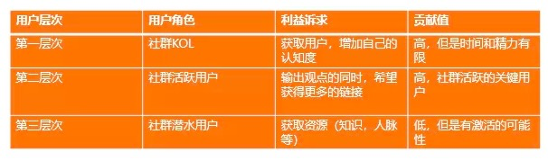 不过可以从参与聊天的次数和聊天价值贡献比例,可以将用户分层:普通用户,KOL用户,活跃用户,潜水用户,针对社群内用户的层次占比,有意识地对社群内用户进行激活。