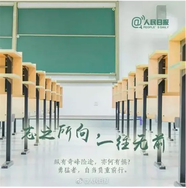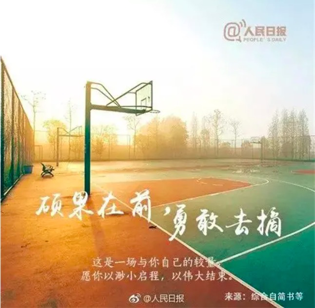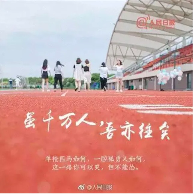 首先是人民日报。这是高考最常规的文案操作,极具激励感、鼓舞性的文案,给考生们大涨士气,助考生们凯旋归来,也符合人民日报的调性。