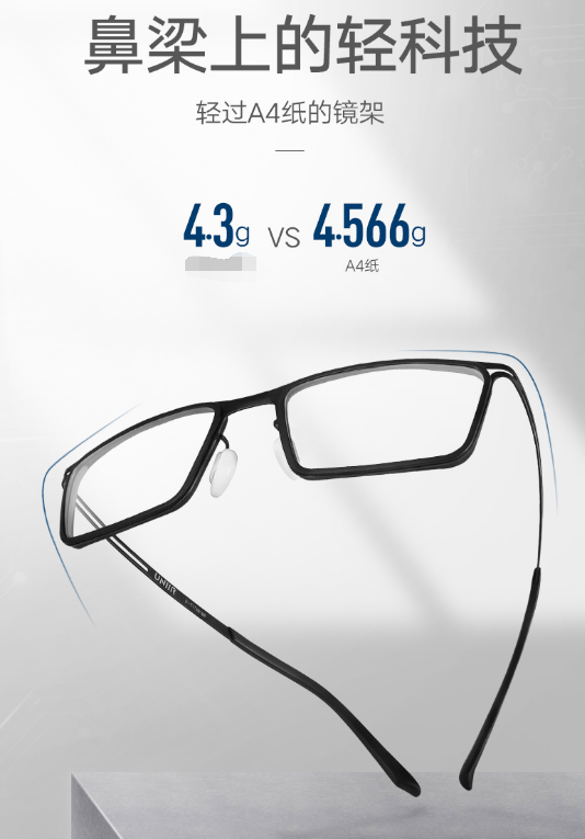 与众不同,才能脱颖而出。在其他眼镜品牌还在材质、风格、防蓝光上做文章时,该眼镜项目独树一帜,打出了“轻”这一slogan,轻过一张A4纸。