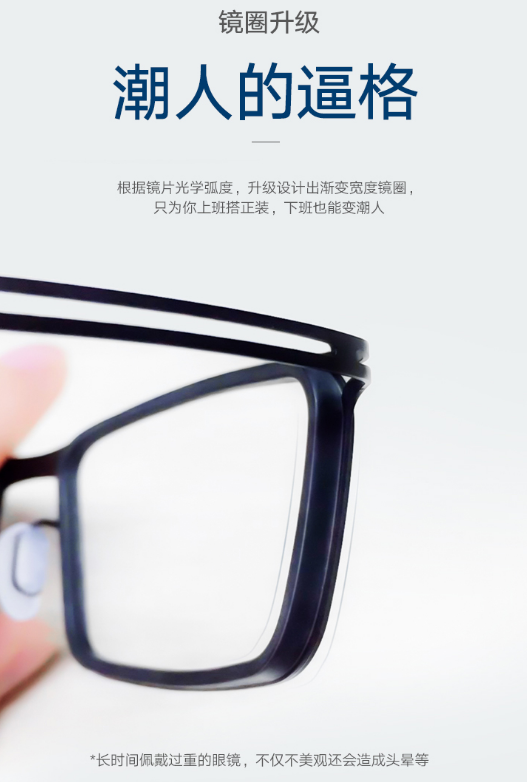 指出消费者痛点,度数高,戴厚镜片不好看,会被人取笑。然后再给出解决方案,推出自家产品,我们的镜片是根据镜片光学弧度,升级设计的渐变宽度镜圈。反正不管是怎么搞的,不管用的词有多么专业,目的是告诉消费者使用我们的眼镜,不管何时何地都能展现你的美,避免被取笑。