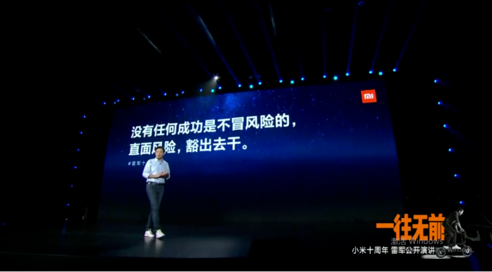 “没有任何一个成功是不冒风险的。直面风险,豁出去干!”雷军在十周年演讲中说。他之所以二次创业,干一件风险极大的事,是为了心中的梦想。