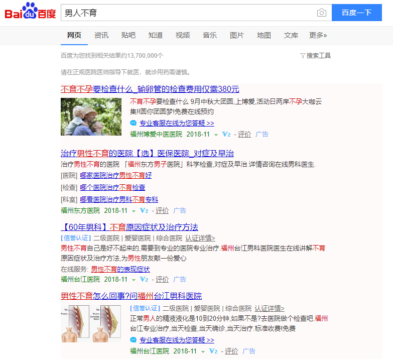 比如“男人不育”,除了恶搞,竞争对手,我这种做示范的。你可以思考都什么用户会搜索这个词。
