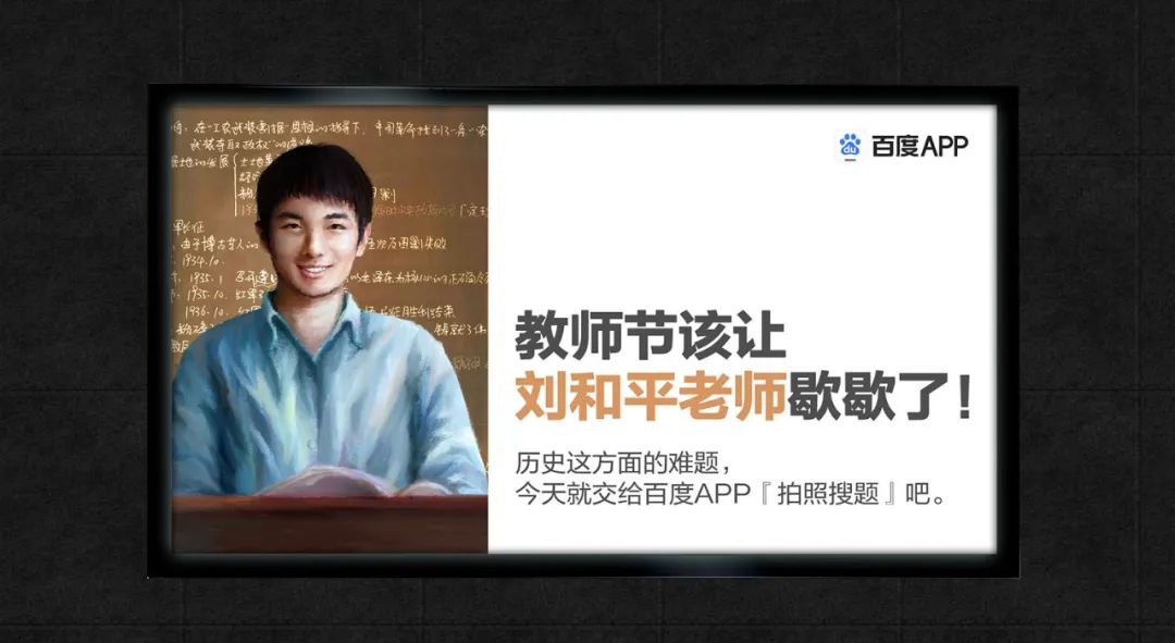 在反套路营销上,百度App的广告内容与网易严选有一拼。在今年的教师节,百度推出了「教师节该让xxx老师歇歇了」,从而引出品牌的主角「百度App拍照搜题」,能够让人立刻抓住产品的功能点,引发热议。