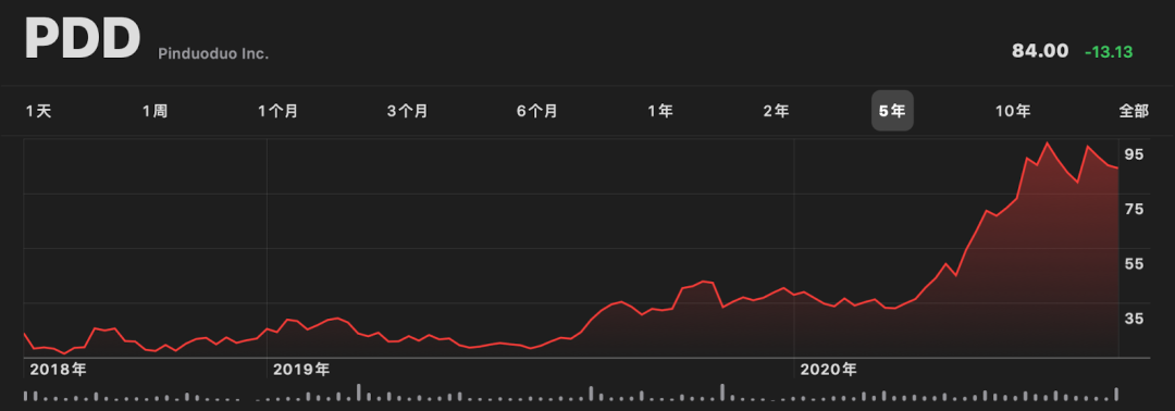 随着业务的迅猛发展,拼多多的股价也水涨船高,也体现了市场对于拼多多未来的信心。