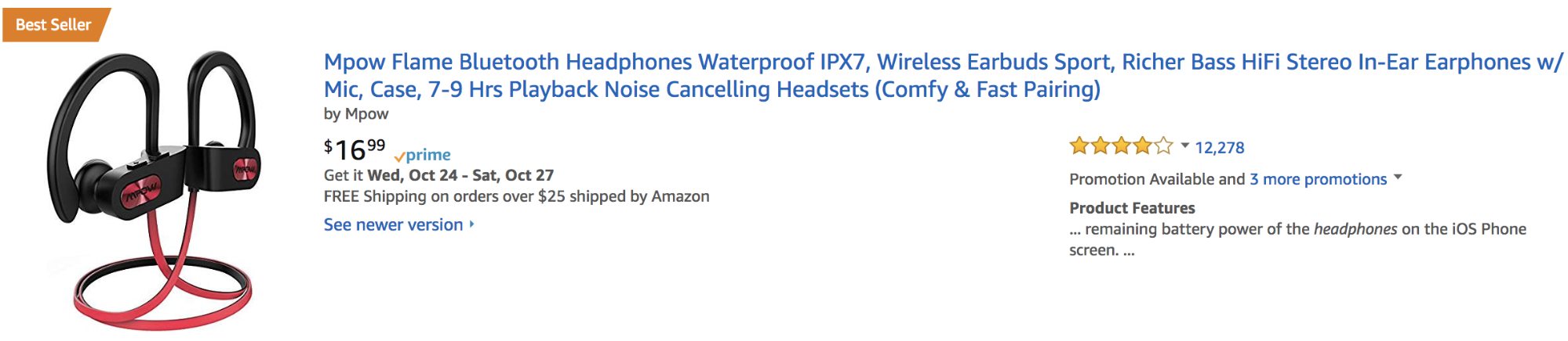 亚马逊上的这些蓝牙耳机是详细产品名称的一个很好的例子: