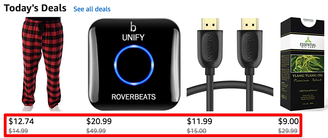 将价格放在突出的位置,如果您提供折扣,则划掉旧价格。这是亚马逊使用的经典策略,也是它们的转化率如此之高的原因之一。