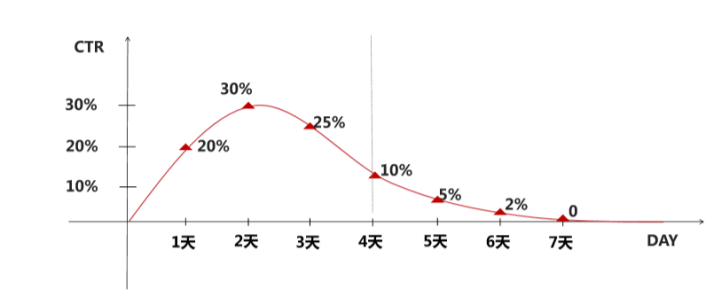 经过整个平台的投放效果观察发现,广告在投放7天左右之后,其效果可能会衰减,所以,创意更新周期控制在七天内。实践表明,广告新上线的3小时内发现曝光和点击都很低,需要及时调整出价和定向条件,若无效需更换创意。