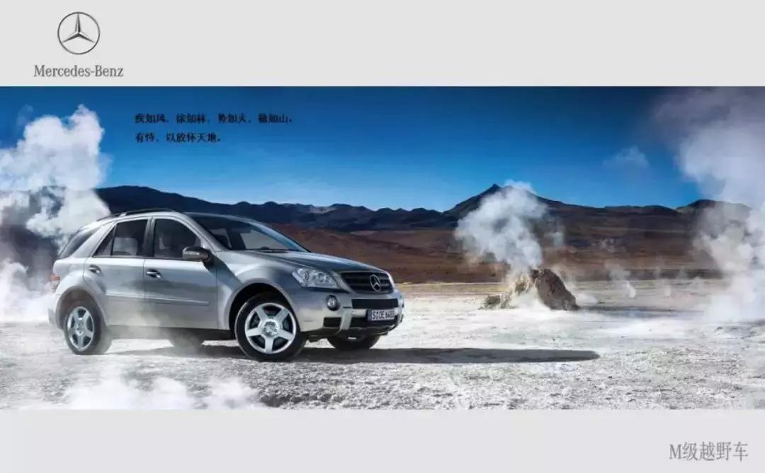 类似的还有奔驰的两则文案,也是在文案表达中使用大量开阔、豪迈的意象,比如“天地”、“江海”、“风”、“山”等,去传递产品的调性。