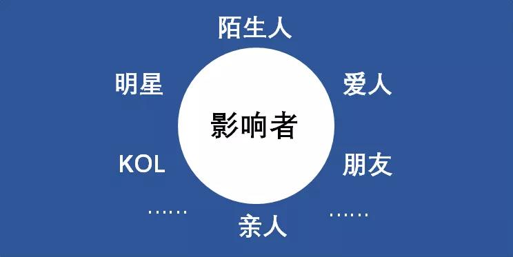 除了明星、KOL这些重量级的影响者之外,事实上,购买者的朋友、亲人、爱人和陌生人等等人群,只要你能够找到他们之间的联系,你都能够借助他的力量去影响你的购买者。