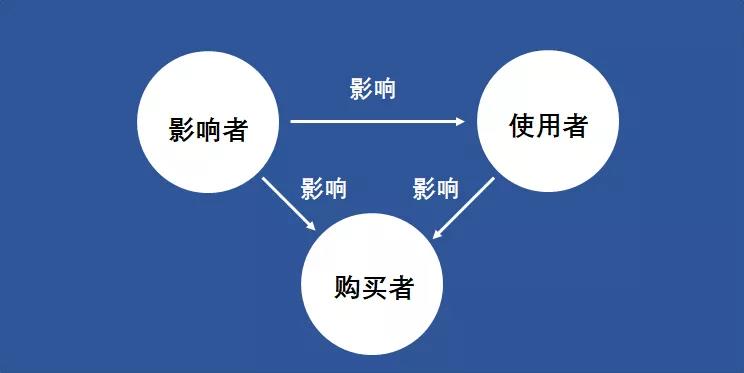 也就是说,要想把产品卖出去,你除了要关注购买者,你还要重视能够影响购买者购买行为发生的人。