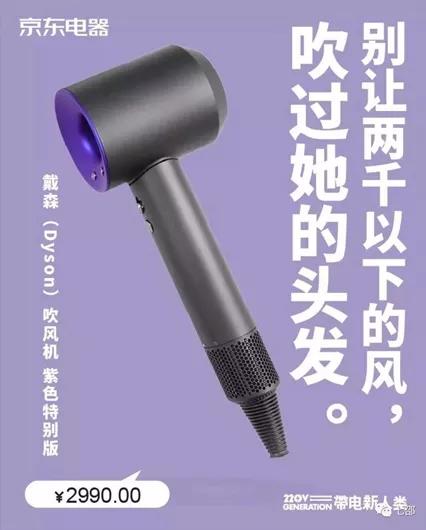 这是戴森电器的广告,真的是想掏空所有男人的钱包,连吹风机都要送2000块以上的。