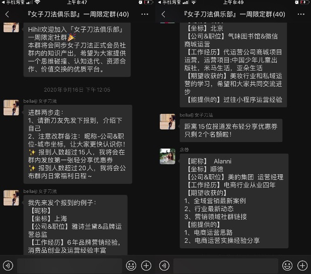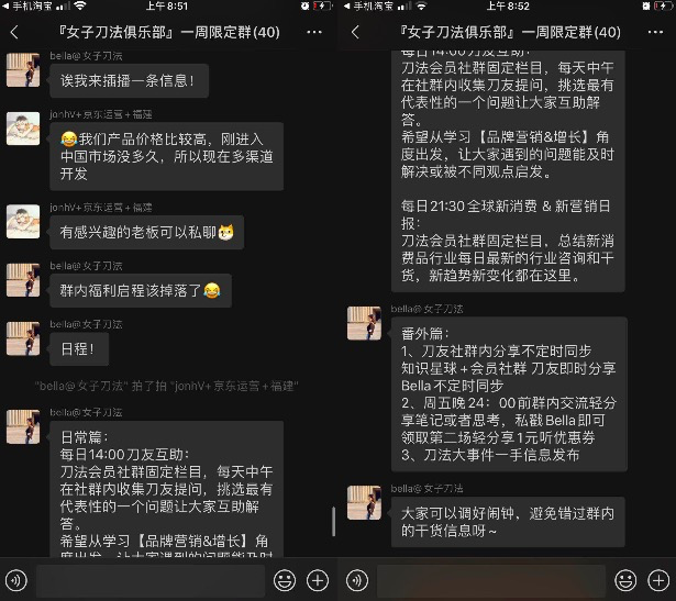 ③提升女子刀法「一周限定社群」门槛格调,激励用户进群后的活跃度。