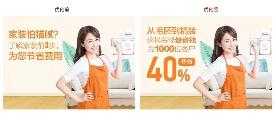 重新确定用户痛点后,主标题和描述从“家装怕猫腻?”变为“从毛胚到精装,这样装修最省钱。” 因为意识到:大部分要装修的用户,真正的痛是怕麻烦,不是怕上当。这个页面改变后的注册转化率提高了近30%。