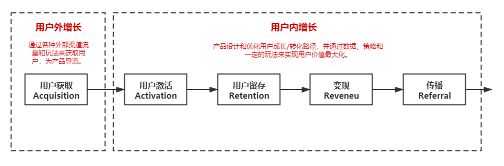 所以用户增长的全貌,就是要想尽一切办法,从用户获取开始到、用户激活、留存、变现和最终二次传播,去完成整条路径上的所有工作。
