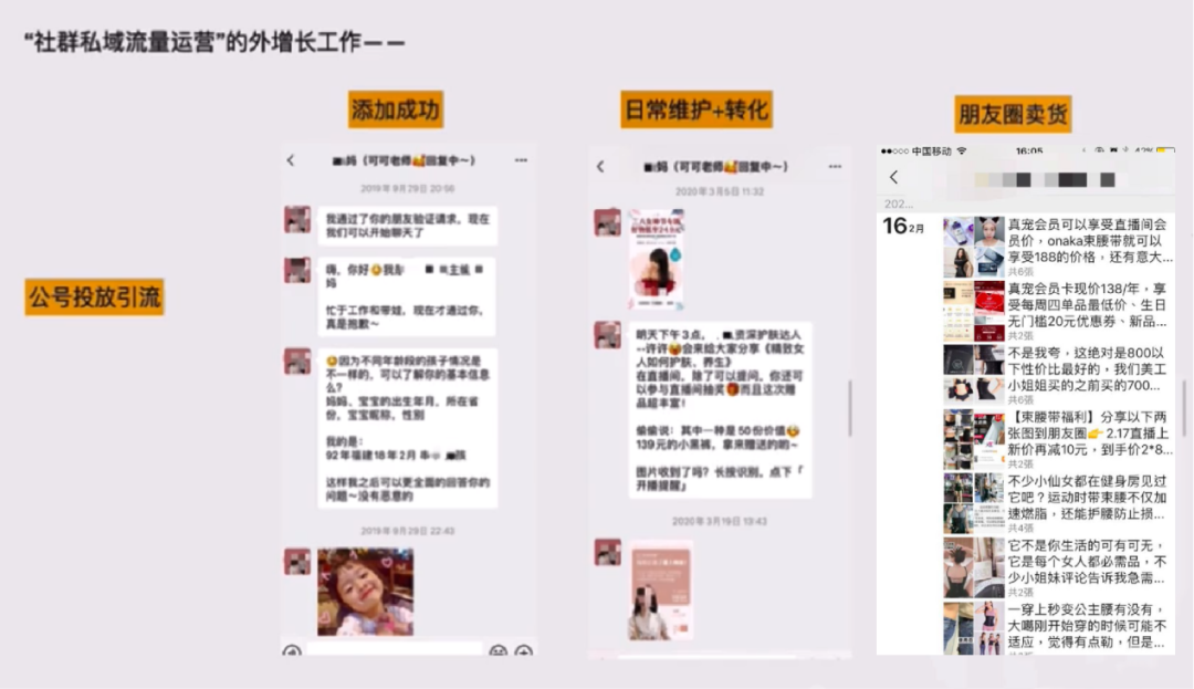 然后将用户引流至社群。通过分享产品相关知识以及提供一些免费的服务,来实现用户激活和留存。
