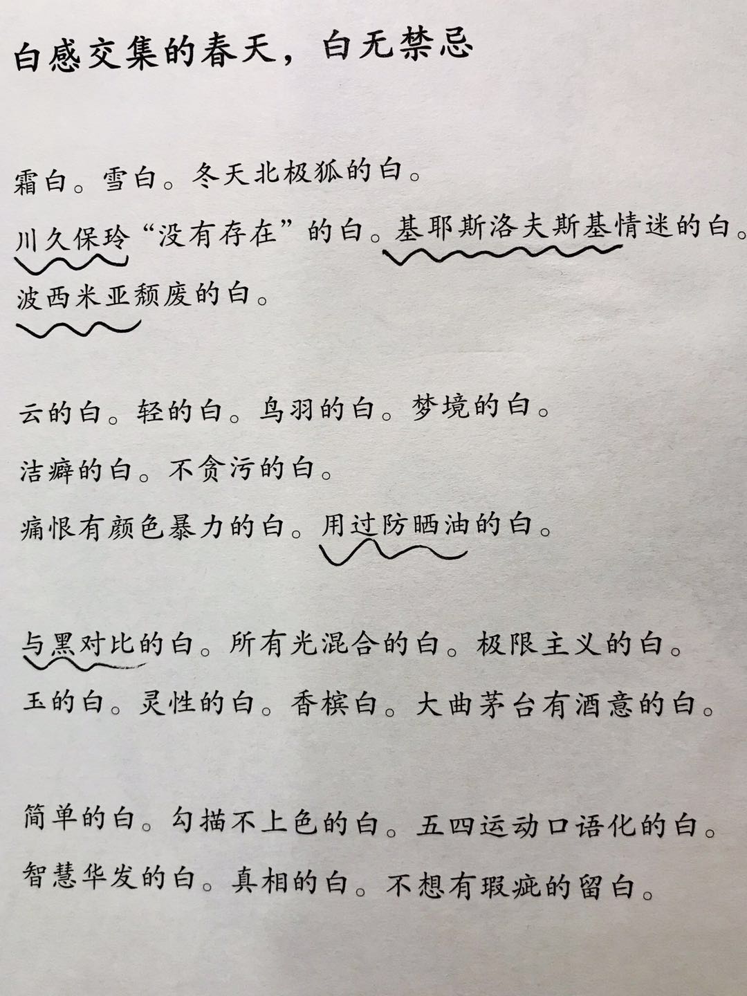 简单的白。勾描不上色的白。五四运动口语化的白。