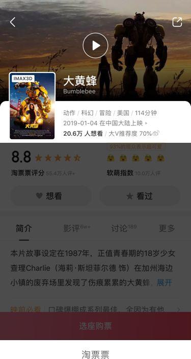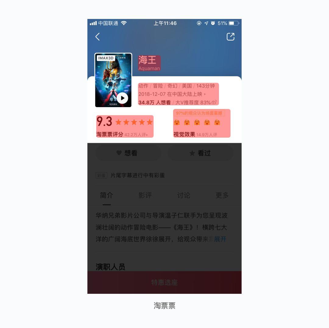 本能反应作为情感化设计的一种,我们需要处处为用户着想,在细节上为用户提供便利。例如淘票票中的电影详情页,将电影的预告片提到顶部,用户可以直接产看预告片,而不是再去下拉寻找。