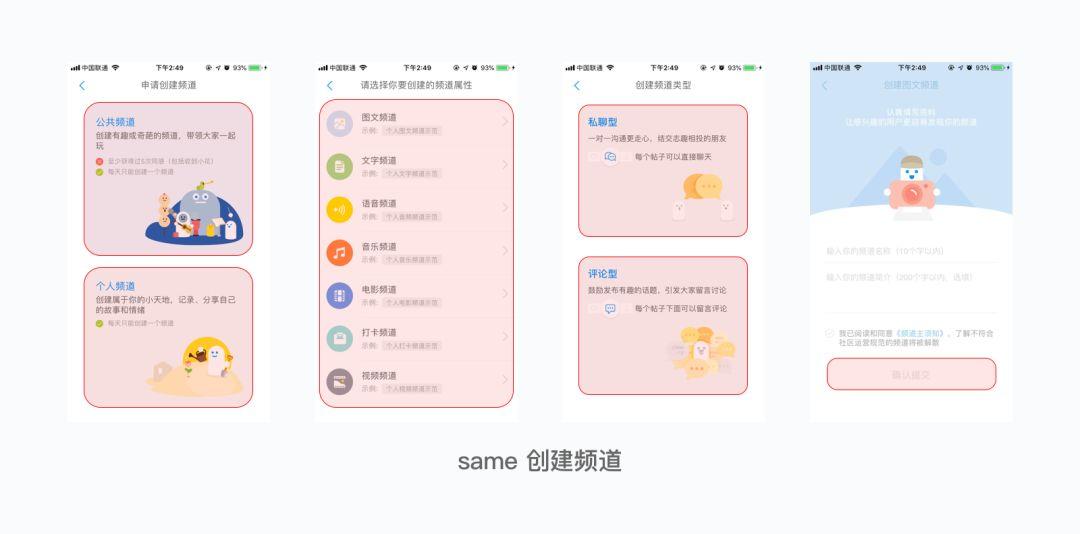 same 创建频道的过程分成“4步”,每一步用户只需要面对少量的选项,直接将用户的认知时间成本降到了最低,无意为用户创造了一次愉快的用户体验。