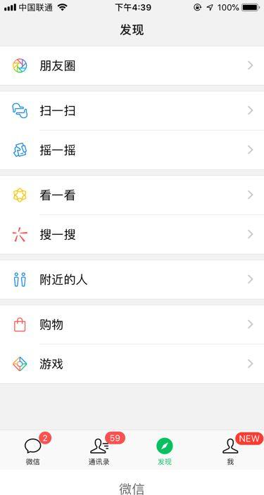 人们会将相邻比较近的元素自动归为一组。例如微信的发现页面,我们第一印象就是相互靠近就是同类型的一组功能。