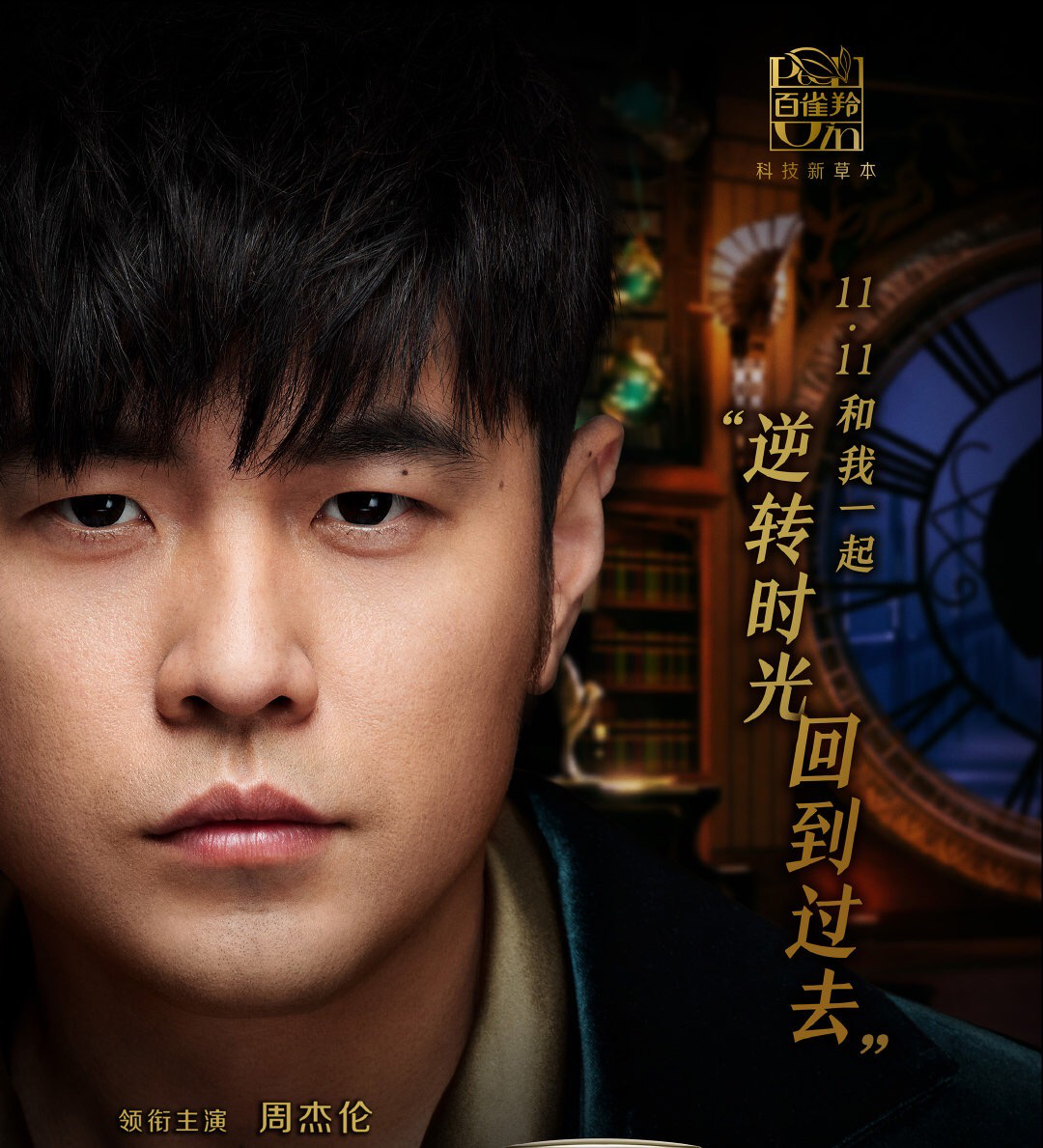 王一博,一个是正当红的顶流男神;周杰伦,一个是撑起一代人青春的华语天王。国货品牌百雀羚在双十一来临之际做出了一个大胆的决定,让这两个"王炸"组合相遇,一同担任品牌代言人,并邀请两人共同出演了微电影《逆时帧之轮》——讲述时间的故事,突出百雀羚新品帧颜霜"定格年轻,定帧美好"的产品卖点,让新品帧颜霜在明星光环的护航下强势出圈。