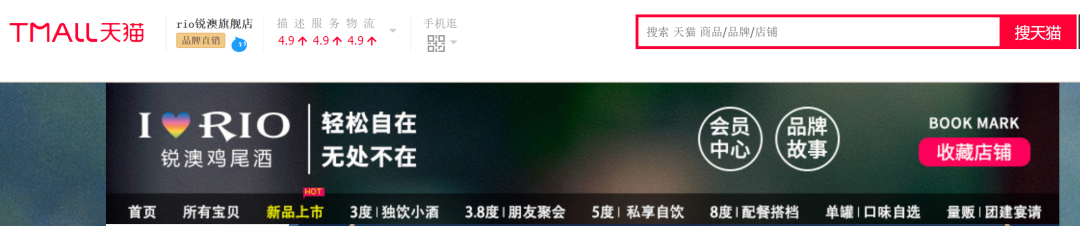 看一看今天的RIO,天猫旗舰店里完全是按场景细分的:3度|独饮小酒、3.8度|朋友聚会、5度|私享自饮、8度|配餐搭配,另外还有适合团建宴请的量贩装。