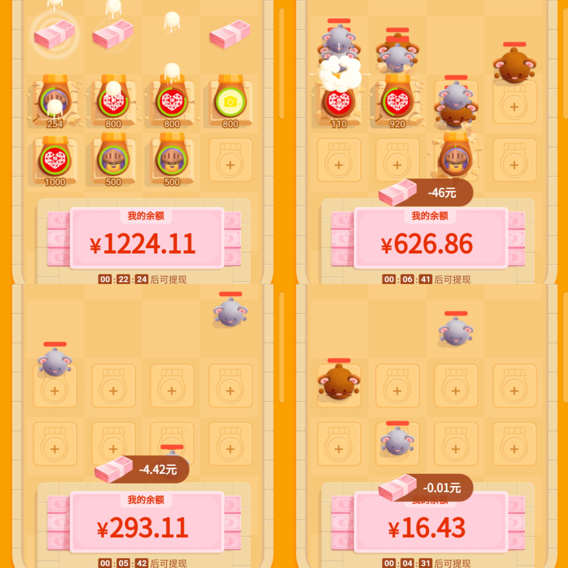 但后边抵不住N波又大又多的老鼠,毕竟游戏的目的就是拉新,不行动的只会快速结束游戏。