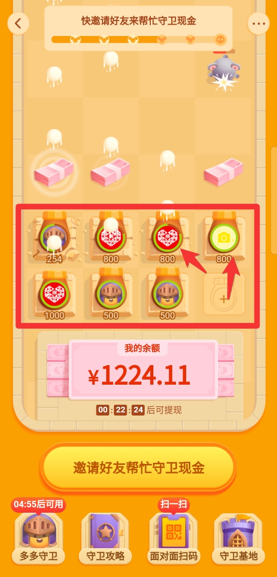 奖励:成功守卫指定时间即可将剩余现金进行提现